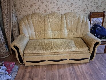 Qızılı-bej rəngdə klassik üslublu üçnəfərlik divan