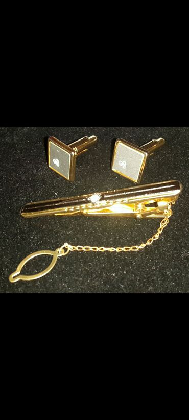 Bu dəstə iki cüt mancet düyməsi və iki ədəd qalstuk sancağı daxildir
