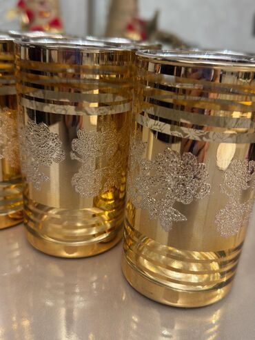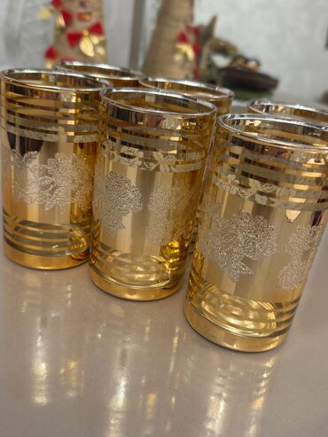 Stəkanlar, rəng - Qızılı, Şüşə, 6 ədədli dəst