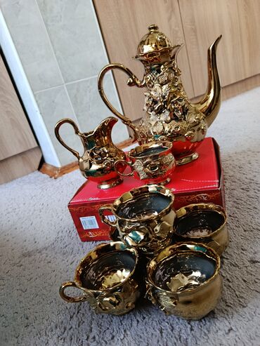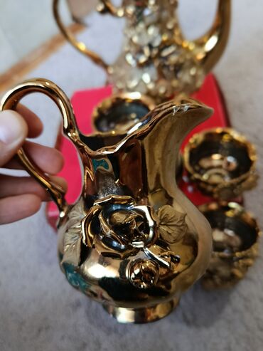Qızılı rəngdə dekorativ antikvar çay/qəhvə dəsti