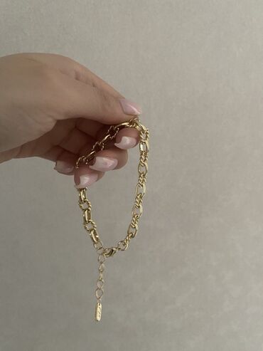 QadınZəncirvari dizayna malik qızılı rəngli bilərzik. Bilərzik müxtəlif formalı halqalardan ibarətdir, həm sadə, həm də burulmuş tipli halqalar mövcuddur. Ürək formalı charmı və tənzimlənə bilən uzantısı var. Gündəlik istifadə üçün uyğundur.