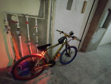 - 26" təkərlər: ön mavi disk, arxa qırmızı yan şin relyefli protektorla