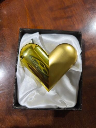 - Dizayn: İki hissəli, qızılı parlaq və mat səthlərin kombinasiyası ilə ürək formasına çevrilən dekorativ asılqan.