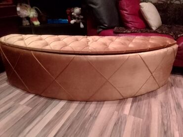 Qızılı rəngli yarımdairəvi puf, 50 AZN, ideal veziyyetde. Mehsuldu hem paltarlari yigmaga dolab ve oturacaq (3-4neferlik rahat) kimi istifade elemek olar. qiymet sondur.