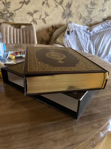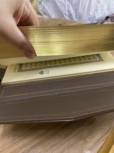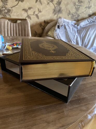 Qədimi çox kiçik ölçülü, miniatür QURAN KİTABI və kitabı İçinə qoymaq üçün gümüşü rəngli qabı var. Əl içinə sığışan miniatür kiçiklikdə QURAN KİTABIDIR. Maraqlı əl işi s...