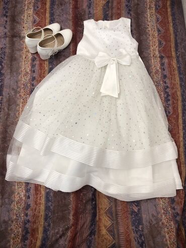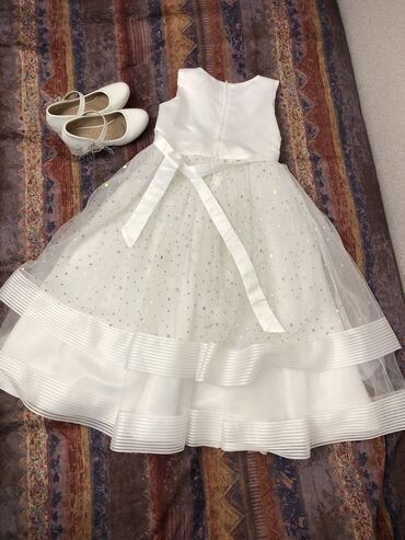 1 yaş tedbirine tikilib 200 mana. 1 defe geyinilib, ister ayaqqabı ister paltar. Ayaqqabı 40 mana alınıb. 2 si bir yerde 100 mana satıram. Rəng: klassik ağ Stil: zərif, şənlik üçün Ayaqqabı: qız u...
