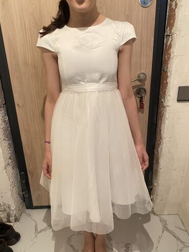 Qız uşaqları üçün zərif ağ ziyafət/libas 150 manata alınıb 1 dəfə geyinilib.50 manata satilir - Model: uzun, axıcı tül ətəkli, çiyin açıq dizayn - Üst hissə: krujeva detallı bodi, incə askılar - D...