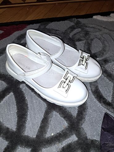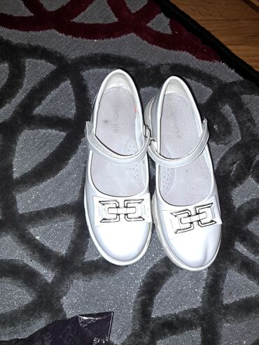 Məhsul: BeBetto qız uşaqları üçün bantlı baletkalar - Rənglər: krem və ağ - Ölçülər: 26–31 (şəkildə qeyd olunub) - Model: Mary Jane tipli, tənzimlənən tokalı qayış - Material: parlaq lak effektli ...