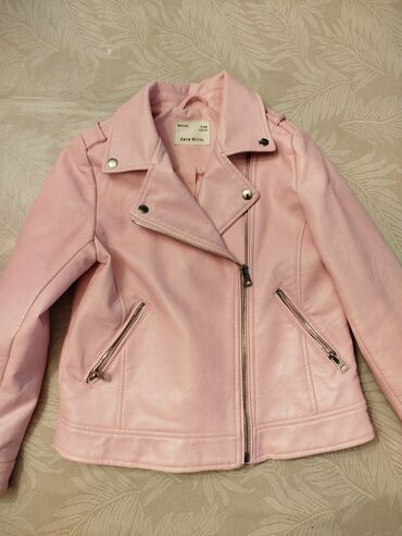 ZARA qız uşaqları üçün cins gödəkçə - Rəng: tozlu çəhrayı/boz qırmızı tonunda - Material: kalın denim (pamuk əsaslı) - Naxış: bütün səthdə açıq rəngli xırda xəttçiklər - Model: qısa kəsim, klassik...