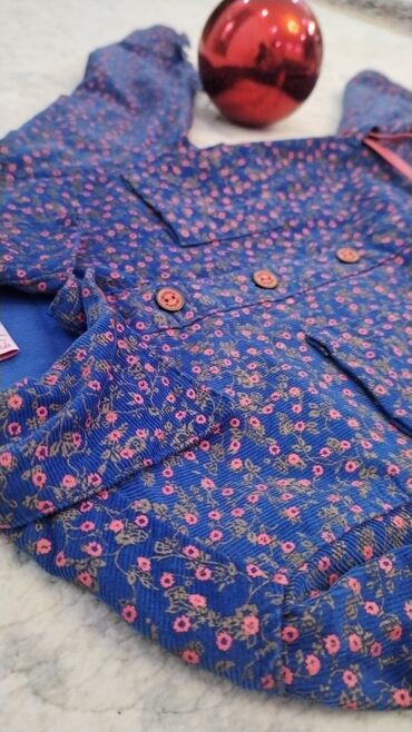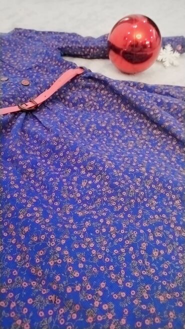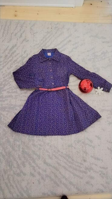 Tünd göy rəngdə qız uşağı üçün paltar. 7-8 yaş - Model: önü tam düyməlidir - Yaxa: dairəvi/mandarin tipli yaxa - Qol: uzunqol - Parça: yumşaq, məxməri/terry effekti verən toxuma - Dizayn: bel hiss...