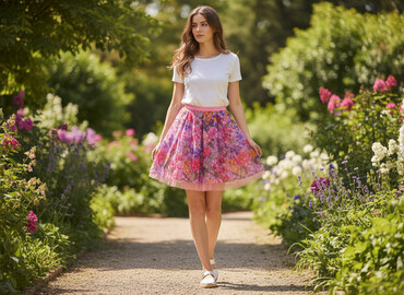 - Model: çiçək və kəpənək naxışlı, A-kəsim, yelpikli