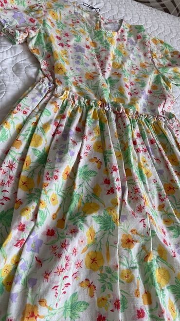 LC Waikiki qız uşağı üçün paltar - Ölçü: 10–11 yaş (140–146 sm) - Rəng: açıq bej fon - Naxış: zərif çiçək və yarpaq printi, pastel tonlar - Model: beldən büzməli, ətəyi qat-qat - Üst hissə: yüngül...