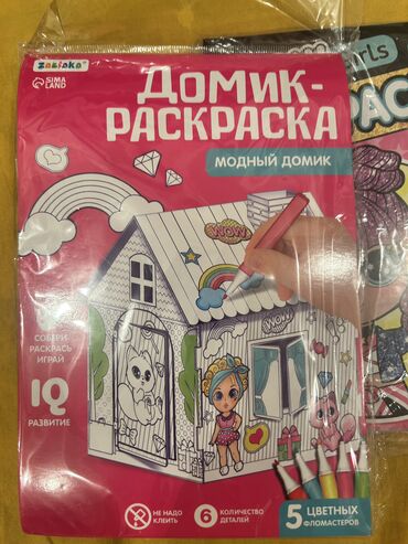 Qizlar ucun dest Oyuncaq, 6 dene rengleme defteri, 2 magnit geyim oyuncagi, 3d rengleme ev. Hamisi bir yerde satılır, Nerimanov metrosu