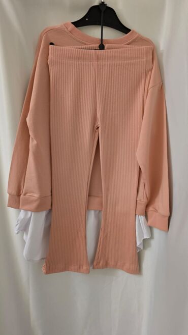 - Alt: Eyni rəngdə şaquli toxumalı (ribbed) elastik şalvar; bel hissəsi rezinlidir, balaqlar yüngül genişdir.