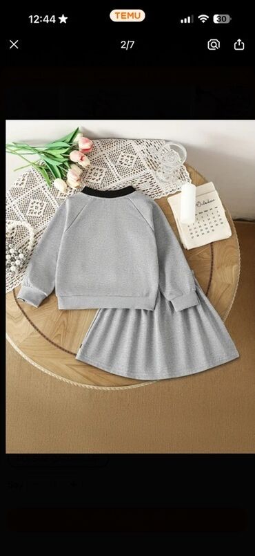 Qız uşaqları üçün dəst və paltar kolleksiyası - 2 hissəli idman dəstləri: - Yumşaq toxumalı, elastik belli şalvar və uzunqol bluz. - Boz-qəhvəyi tonlarda. - Variant 1: Ön hissədə iri qara b...