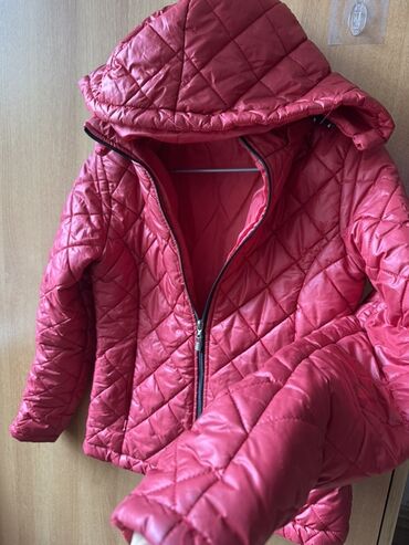 Qızlar üçün qırmızı rəngli quilted (romb tikişli) qısa şişmə gödəkçə