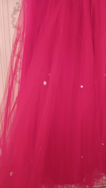 Uşaq üçün şənlik/libas paltarı 1 dəfə geyinilib toya - Rəng: açıq pudra/çəhrayı - Model: uzun, ətəyi çoxqatlı tül ilə, aşağı hissədə büzgülü fırfır detalları - Üst hissə: qolsuz, şəffaf tül yaka, ...