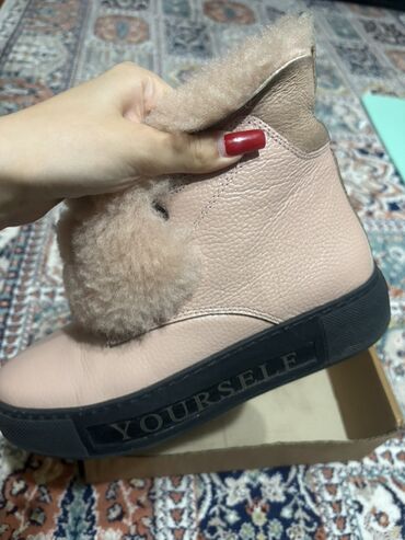 Mother care bot sapaski - Material: üst hissə yumşaq flis/plyuş kürklü tekstil, ön və yan hissələrdə süni dəri detalları - Rəng: açıq çəhrayı - Model: orta boğaz, dekorativ kəmər və ürək formalı to...