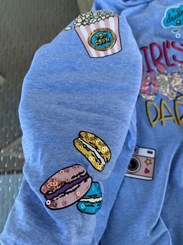 Qız uşaqları üçün qısaqol T‑şört - Rəng: krem/ açıq bej tonlarında - Ön hissədə böyük çap: çiçək motivləri və moda fotoqrafiyalı dizayn - Aşağı hissədə qipür/haşiyə detallı asimmetrik kəsim - Yumş...