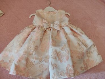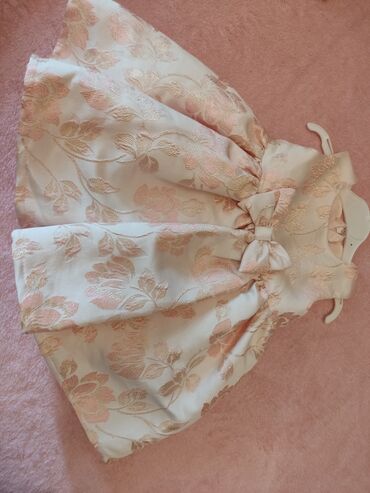 Uşaq üçün zərif ziyafət/libas paltarı.... - Rəng: krem/şampan - Üst hissə atlas parça, qısa qollu - Boyun və qol kənarları incə mirvari bəzəklərlə işlənib - Sinə hissəsində daş, krujeva və mirvari...