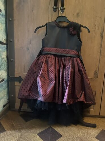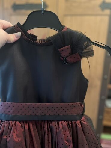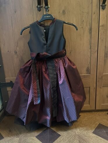 Qız uşaqları üçün qara rəngli ziyafət geyimi 1 dəfə geyilib - Üst hissə: qolsuz/kapron tipli qısa qollu, düz kəsimli, hamar parça - Bel hissəsi: nazik dekorativ kəmər və kiçik qara bant - Ətək: di...