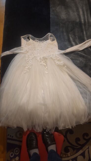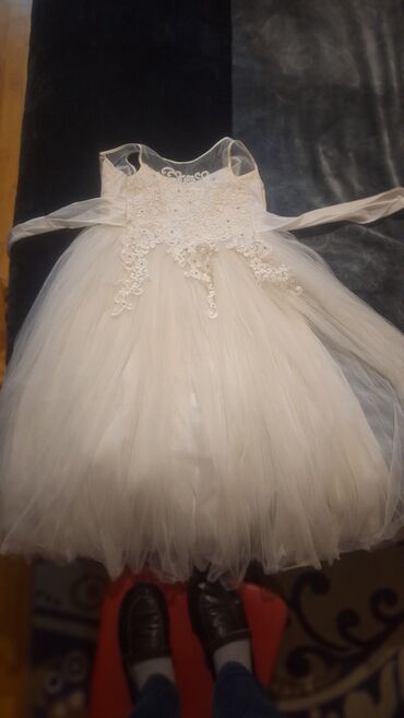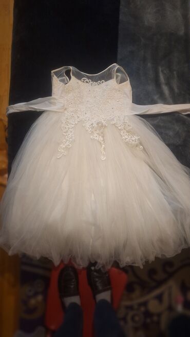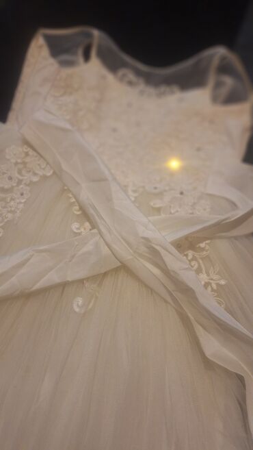 Ağ rəngli qız uşağı üçün ziyafət/libas paltarı.