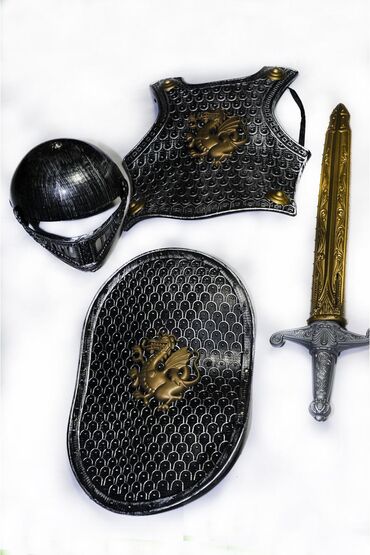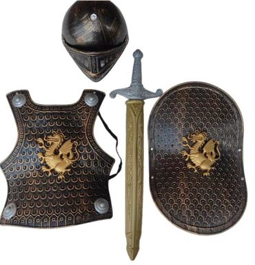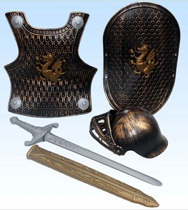 YeniQladiator Desti.Bu uşaq cəngavər zireh dəstinə dəbilqə, döş nişanı, qılınc və qalxan daxildir.