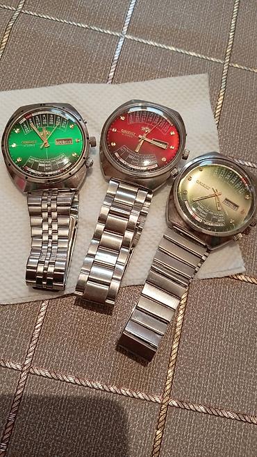 Qutu daxilində bir neçə fərqli Orient modelinin şəkilləri göstərilib; hər biri paslanmayan polad bilərzikli və gün-tarix funksiyalıdır. Retro estetikası və çoxillik təqvim dizaynı ilə seçilirlər.