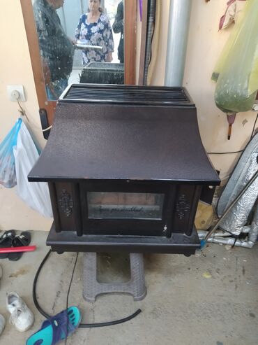 - Ocaq daxili kərpic astar görünür, yandırmanı vizual izləmək üçün şüşə qapı