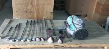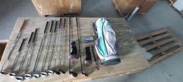 - Qolf çantası: Top-Flite markalı, çiyin kəməri ilə, çox bölməli, yan ciblər və üst tutacaq. Dib hissəsi sərt dayaqla sabitdir.