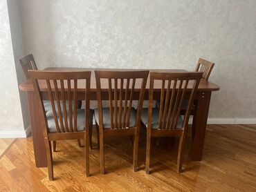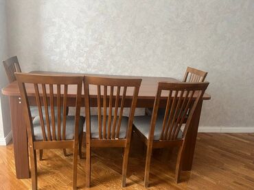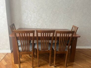 Stolun ölçüləri. eni -90sm,uzunluğu -170sm, açılanda -225sm. 6 ədəd stul. firma əmbawood. yaxşı vəziyyətdədir
