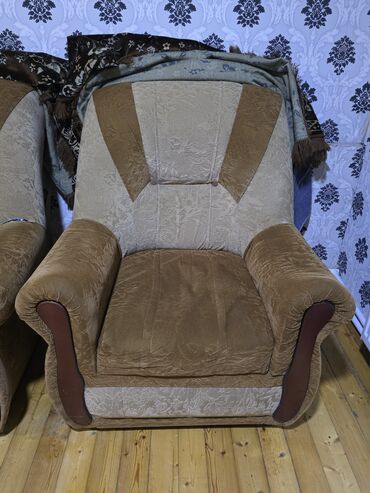 Divan kreslo satılır 200 manata .Real müştərilər üçün Tərkibi: - 3 nəfərlik divan - 2 ədəd geniş kreslo Dizayn və material: - Bej və qəhvəyi tonlarda naxışlı parça üzlük - Yumşaq, hündür bel his...
