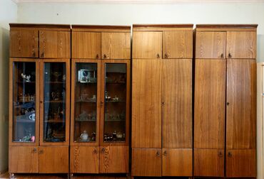 Klassik divar dolabı/gostinaya “stenka” dəsti - Material: ağac əsaslı (laminat/MDFlam görünüşlü), açıq fındıq rəngli. - Komplekt tərkibi: bir-birinə birləşən çoxmodullu hissələrdən ibarətdir. - ...