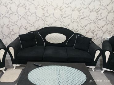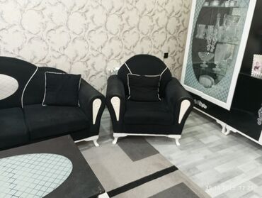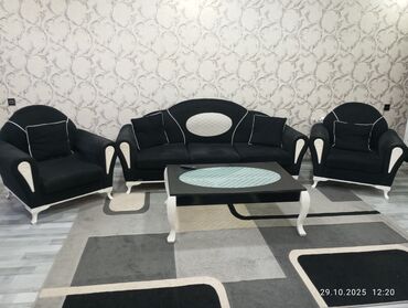 - Divan-kreslo: yumşaq parça üzlük, kontrast kənar tikişləri, dekorativ yastıqlar