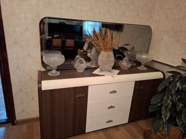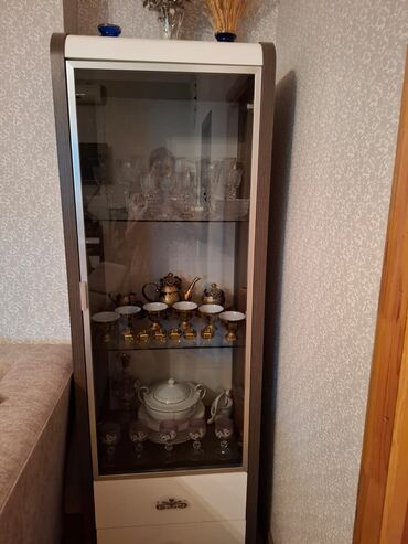 Qonaq otağı mebel dəsti - Rəng: krem/bej, qızılı dekor elementləri ilə - Üslub: klassik, oyma ayaqlar və oval dekor panelləri - Material: MDF/LDSQ (parlaq boya örtüyə bənzər səth), metal qızılı tu...