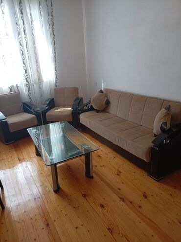 - Tərkibi: 1 ədəd geniş divan, 2 ədəd kreslo, 1 ədəd şüşə sehpə
