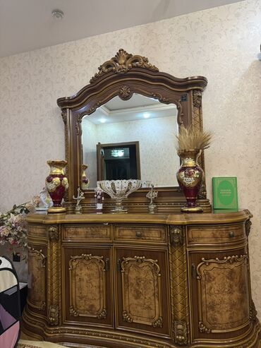 - Komod + böyük güzgü və vitrin şkafdan ibarət dəst