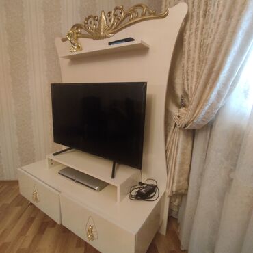 - Orta hissədə TV üçün panel; aşağıda media qurğuları üçün açıq bölmə