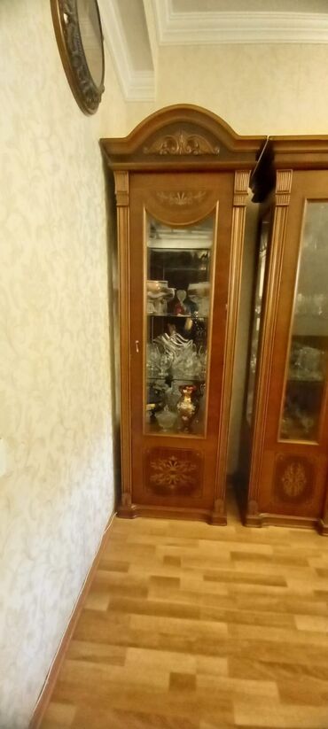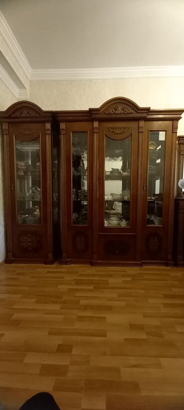 Klassik üslubda vitrin dəstı 2 si biryerde 300 manatdr - Material: təbii ağac üzərində keyfiyyətli finiş, əl işləməli oyma dekor. - Rəng: tünd qoz-qəhvəyi və bal-qızılı tonların kombinasiyası, rely...