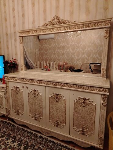 - Dekor: ön panel və ayaqlarda klassik barokko tərzli oyma və qızılı vurğular
