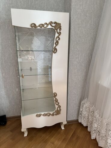 3-lü Klassik üslubda vitrin/dolap dəsti - Rəng: krem/ivori, qızılı naxış vurğuları - Material: MDF/kombinə edilmiş ağac, şüşə qapılar və şüşə rəflər Dəst tərkibi: 1) Dar vitrin 2) Geniş ikili vit...