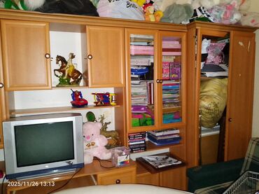 Klassik divar dolabı/gostinaya “stenka” dəsti - Material: ağac əsaslı (laminat/MDFlam görünüşlü), açıq fındıq rəngli. - Komplekt tərkibi: bir-birinə birləşən çoxmodullu hissələrdən ibarətdir. - ...
