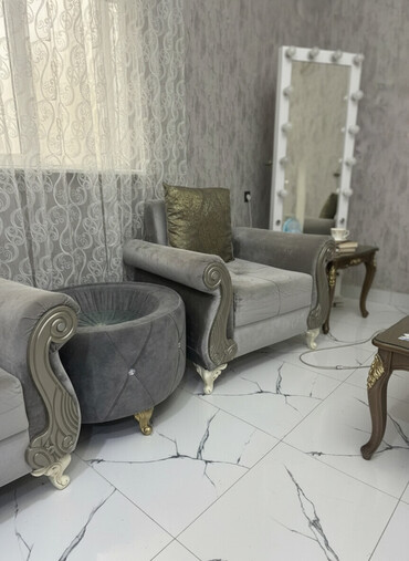 - Kresloların materialı: zərif toxumalı, yumşaq velvet tipli parça, açıq boz ton