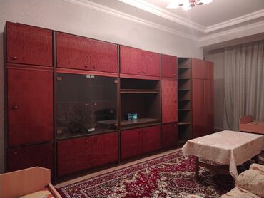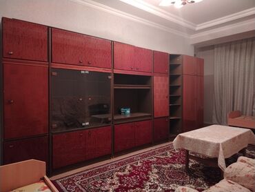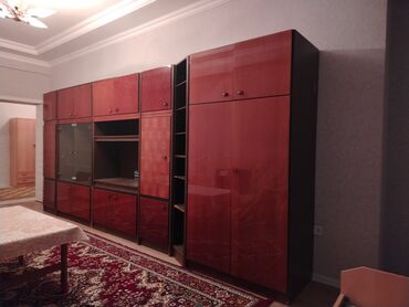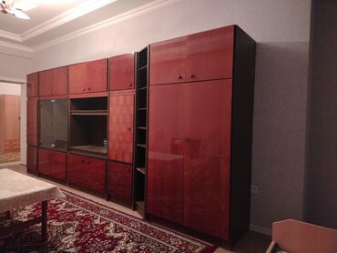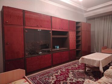 Ağac fakturalı, tünd qəhvəyi rəngdə iri divar mebeli dəsti. Xüsusiyyətlər: - Bölməli vitrin hissələri: şüşəli qapılar, rəflər – qab-qaşıq, kitab və dekor üçün əlverişli - Bağlanan dolab hissələri:...