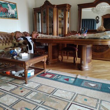 Direktor kabinet dəsti – müasir ofis üçün tam komplekt Tərkib: - Geniş iş masası: taxta teksturalı (ceviz tonları), ön hissədə metalik zolaqlı dekor, üstündə yazı üçün dəri panel. Künclər yumru iş...