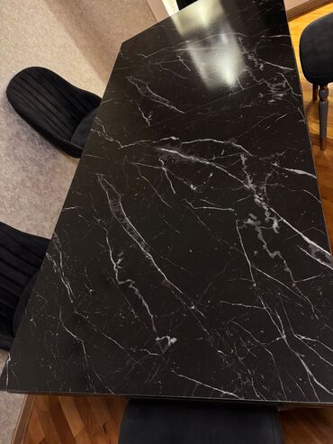 Qonaq otağı masa dəsti stol stul dəsti yemək dəsti - Komplekt: 1 masa + 6 stul - Masa: ağac teksturalı/taxta görünümlü üst, düz və möhkəm ayaqlar, metal bərkidicilər - Ölçü: 90 x 160 sm (şəkillər...