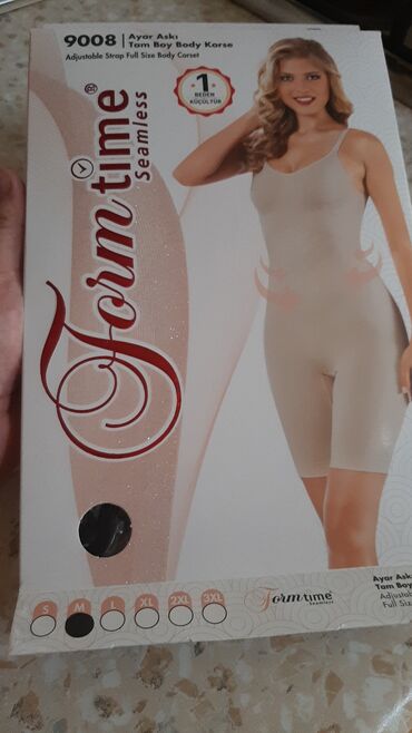 - Formtime Seamless tam bədən korset: Qutu üzərində “9008” model, “Ayar Askı – Tam Boy Body Korse”, “Adjustable Strap Full Size Body Corset” qeyd edilib. 1 bədən kiçiltmə effekti ifadəsi var. Tənzimlənən askılar, tikişsiz quruluş, qısa şort tipli alt hissə. Rəngi bejdir. Ölçü cədvəli S–3XL aralığını göstərir; qutuda S ölçüsü işarələnib. Gündəlik istifadə və geyim altında hamar siluet üçün nəzərdə tutulub.