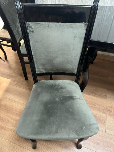 6 ədəd stul (oturacaq və arxa hissəsi boz parça ilə üzlü).