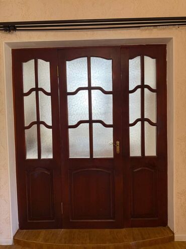İşlənmiş taxta qapılar. Balkon üçün idealdır. Bütün şüşələr daxildir.