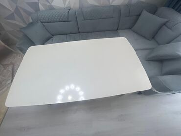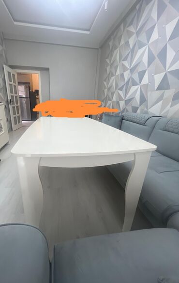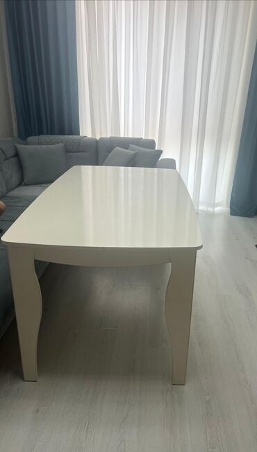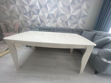Ağ rəngdə, düzbucaqlı formalı yemək masası, geniş səthə və qövsvari ayaqlara malikdir. Masanın dizaynı müasir və zərifdir, bu da onu müxtəlif interyerlər üçün uyğun edir. Yemək və ya digər fəaliyyətlər üçün geniş sahə təmin edir, həmçinin rahat istifadə üçün kifayət qədər böyükdür. Masanın ağ rəngi otağa işıqlı və açıq bir görünüş verir, həmçinin asanlıqla təmizlənə bilər. Qövsvari ayaqları masaya xüsusi bir üslub verir və dayanıqlılığı artırır.